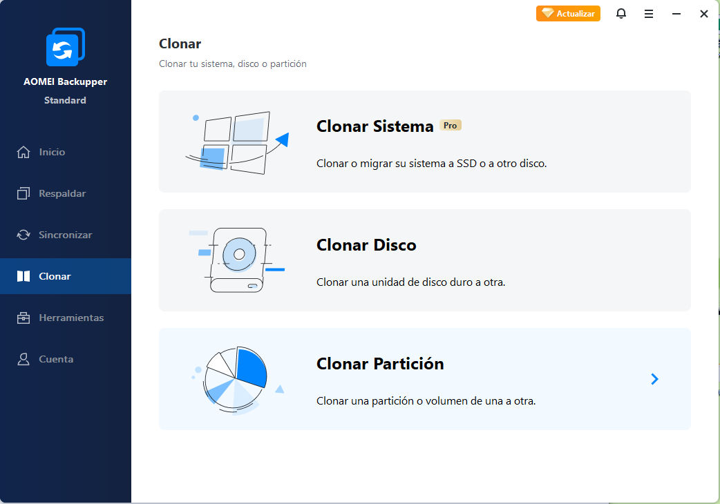 - Tiene una utilidad "Clonación de particiones", que permite mover la partición de recuperación a SSD, HDD, unidad flash USB u otros discos duros externos.