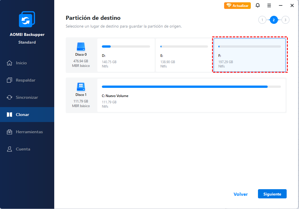 Paso 3. Luego, seleccione la unidad de disco duro que prepara antes como la ruta de destino.