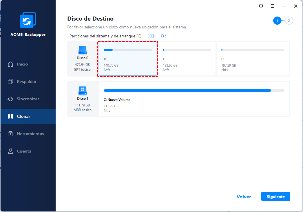 Nota: Si tiene una unidad de arranque y una unidad del sistema en diferentes discos, se sugiere elegir clonar partición.