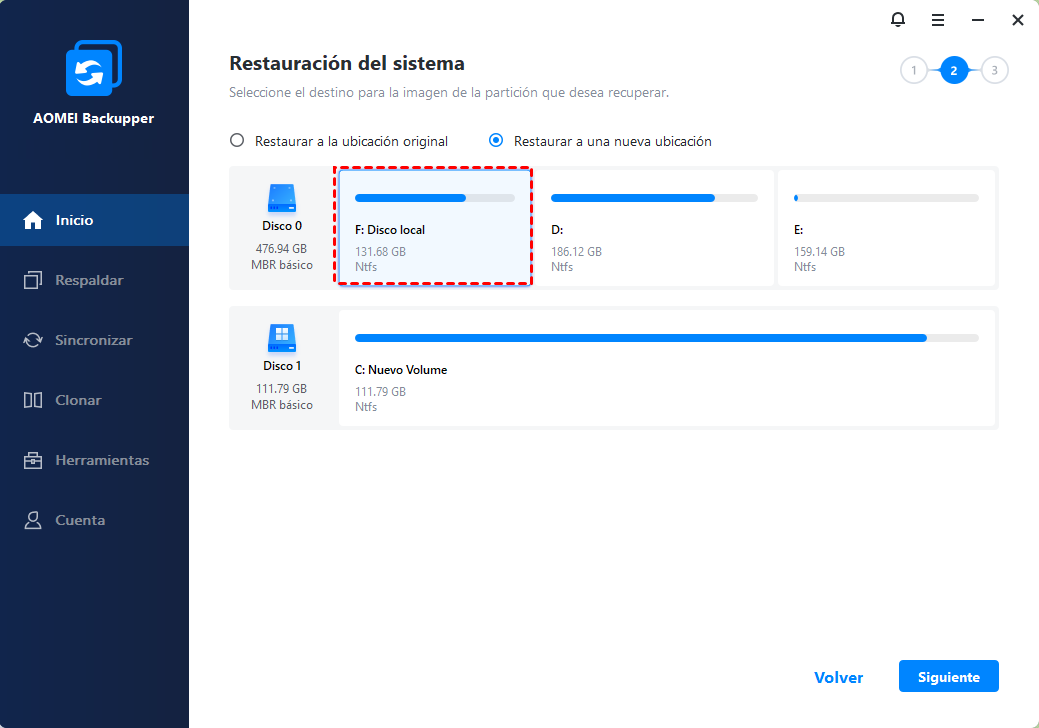 Nota: Este software seleccionará la última imagen del sistema automáticamente según su tiempo de respaldo. Si esta imagen de copia de seguridad está dañada, puede seleccionar una anterior seleccionando un punto de tiempo diferente.