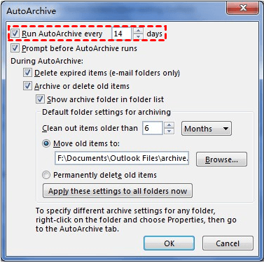 - Abre la ventana de configuración de Autoarchivo como se menciona en el método 1.