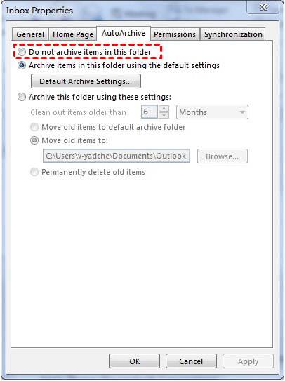 - Asegúrate de que la casilla "No archivar elementos en esta carpeta" NO esté seleccionada si deseas que los elementos se archiven.