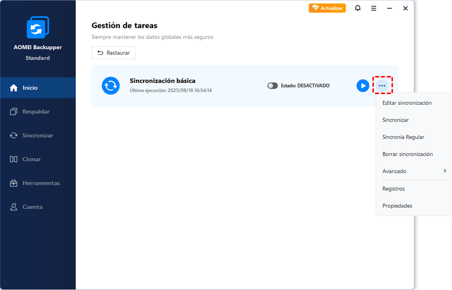 ¿Cómo sincronizar archivos con AOMEI Backupper Standard?