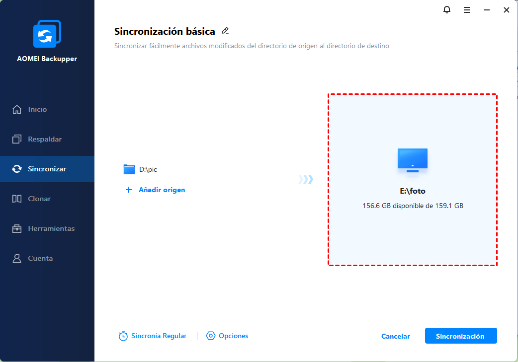 Sincronizar una carpeta con unidad de red automáticamente con AOMEI Backupper
