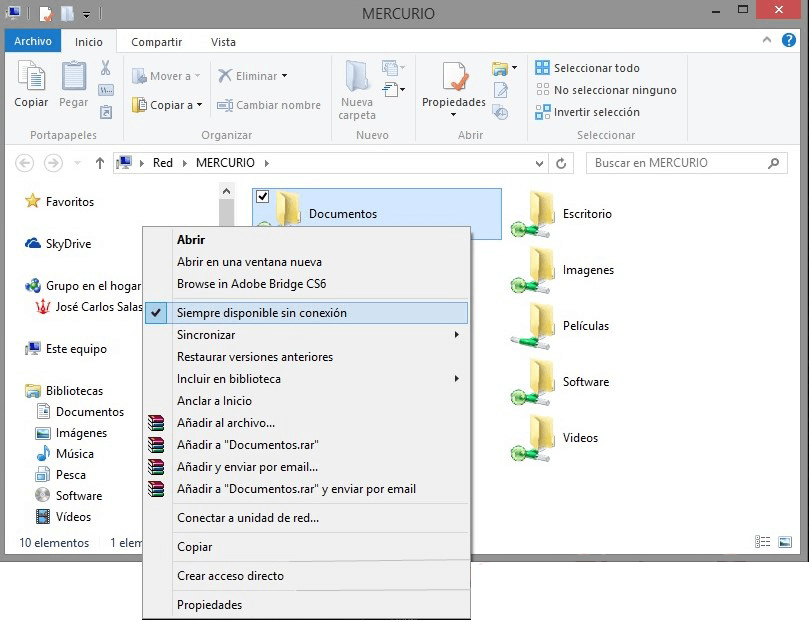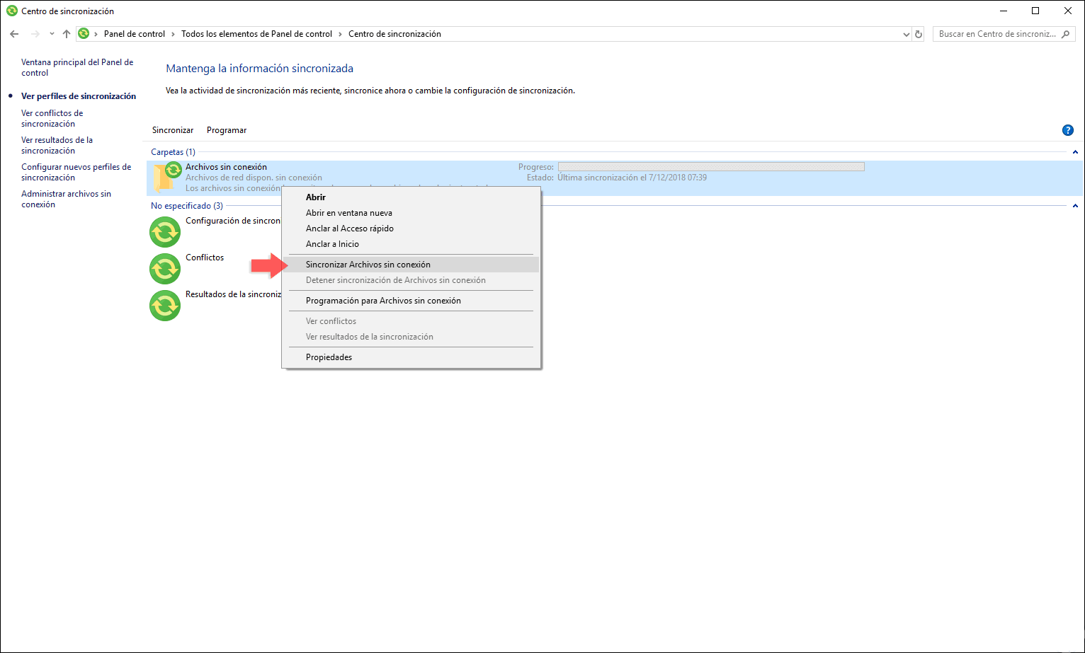 Sincronizar carpeta con la unidad de red con Centro de Sincronización