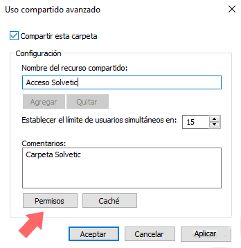 Paso 3. Ve a la sección Uso compartido avanzado, haz clic en Uso compartido avanzado... y luego marca Compartir esta carpeta para activar el uso compartido en red.