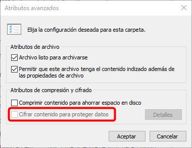 Cómo solucionar "la opción Cifrar contenidos para proteger datos está inhabilitada"