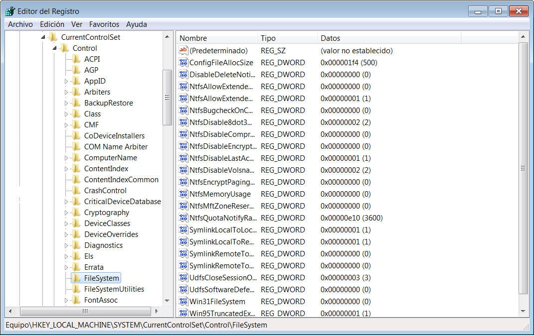 HKEY_LOCAL_MACHINE\System\CurrentControlSet\Control\FileSystem