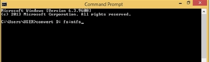 Paso 2. Escribe el siguiente comando: convert D: fs:ntfs. Pulsa "Intro".