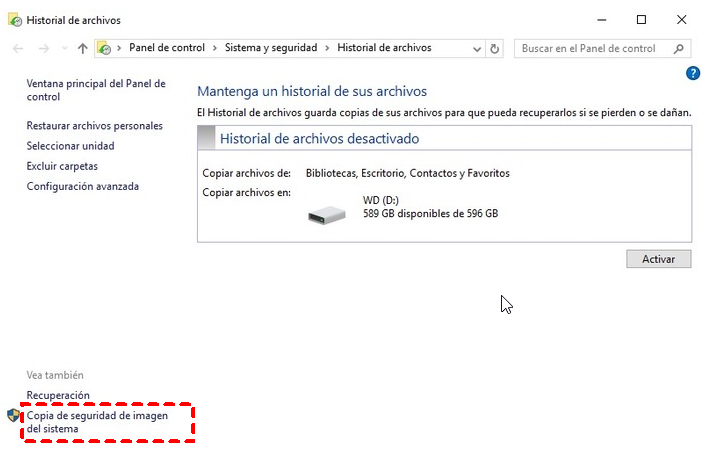 La función de copia de seguridad de imagen en Windows 10 incluye una copia bit a bit de todo el sistema. Para crear una copia de seguridad del disco de arranque en Windows 10, es posible que deba completarla en dos formas separadas, hacer una copia de seguridad de los archivos y crear una imagen del sistema. Y cuando restaura la imagen del sistema, el software solo restaura todos los eventos y datos personales incluidos en la imagen.