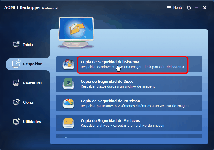Después de la nueva instalación de Windows 10 en su equipo, a usted le recomienda encarecidamente crear una imagen de copia de seguridad del sistema Windows 10 en caso de que el sistema operativo no arranque. El software de copia de seguridad completo - AOMEI Backupper le permite realizar copias de seguridad del sistema fácilmente.