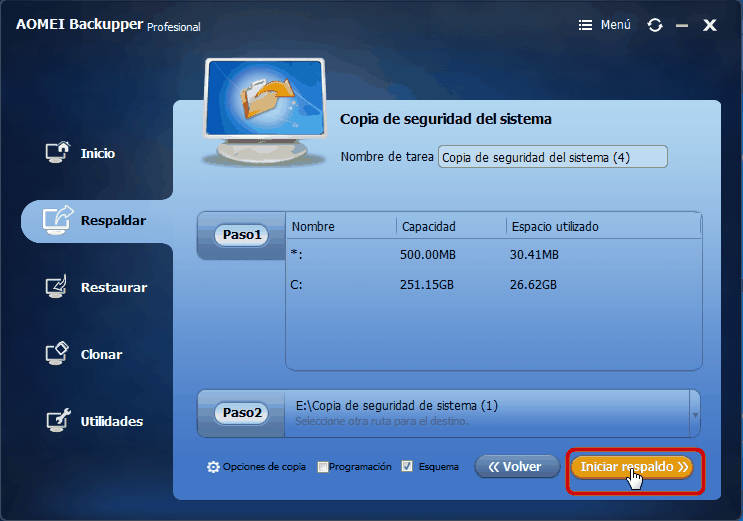 - Programar copia de seguridad: Puede utilizarlo para hacer una copia de seguridad del sistema de forma regular, diariamente, semanalmente o mensualmente.