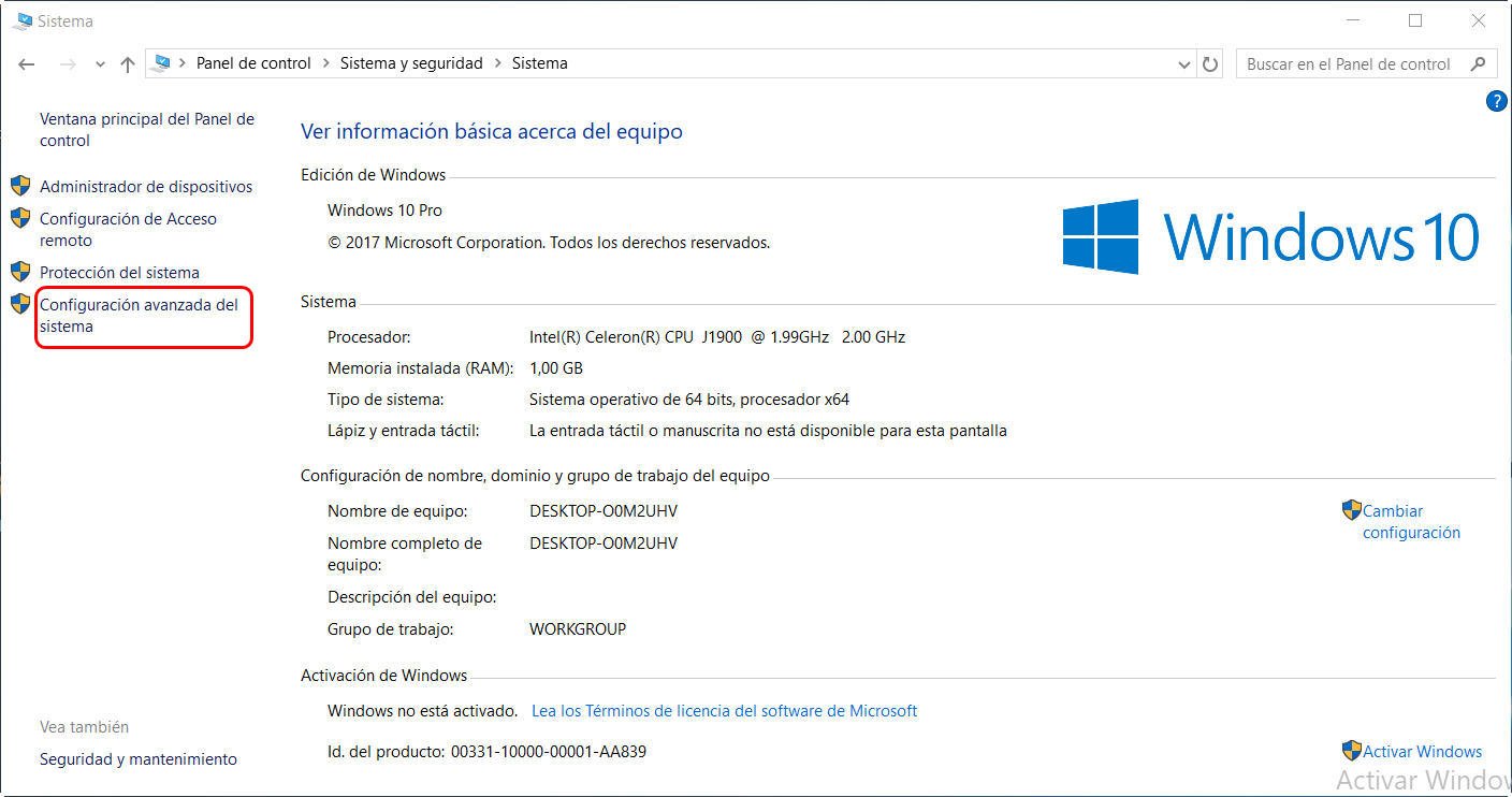 1. Haga clic con el botón derecho del ratón en Este PC y seleccione Propiedades y, a continuación, seleccione Configuración avanzada del sistema.
