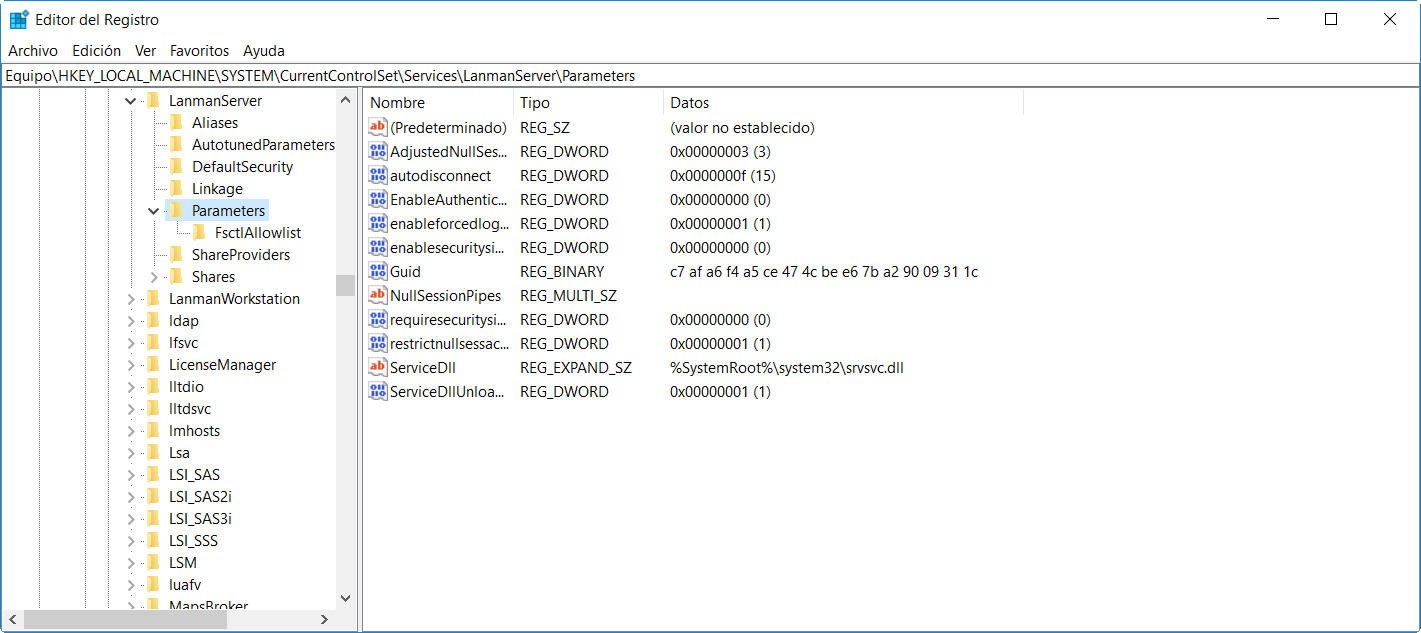 HKEY_Local_Machine\SYSTEM\CurrentControlSet\Services\LanmanServer\Parameters\