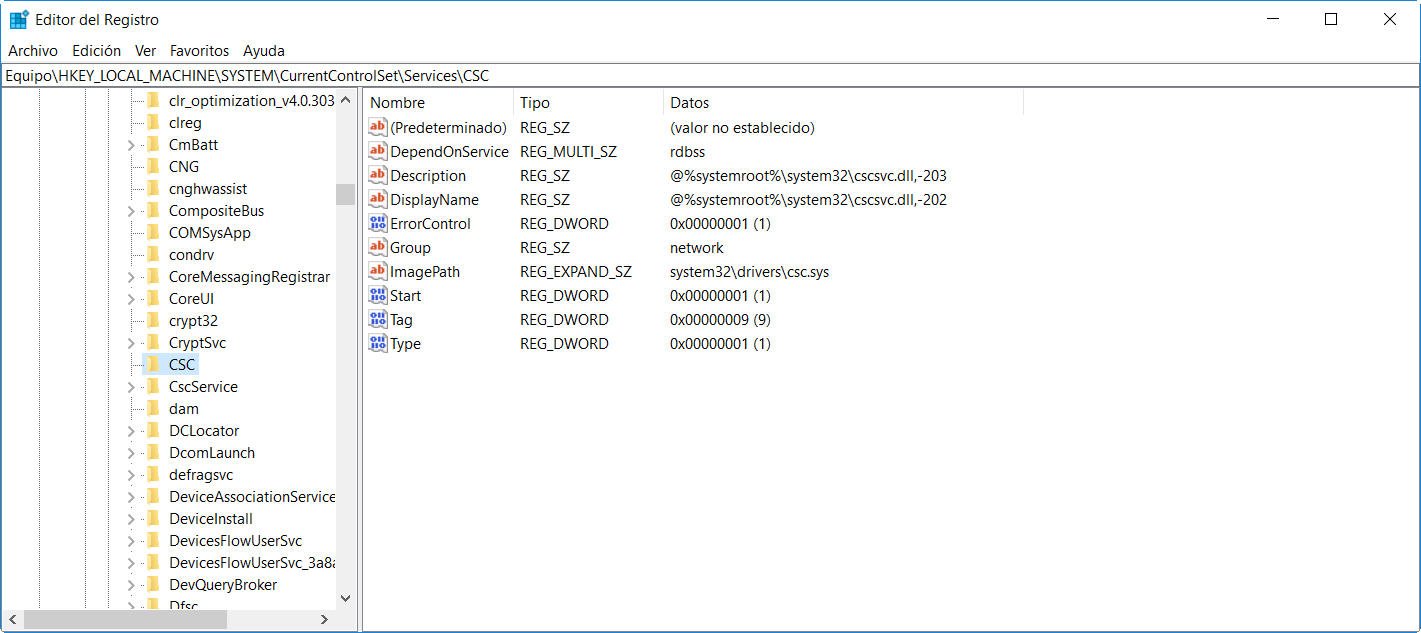 HKEY_LOCAL_MACHINE\System\CurrentControlSet\Services\CSC