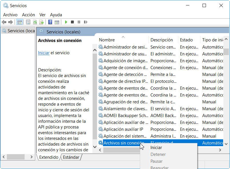 Servicio de archivos sin conexión no se puede habilitar en Windows.