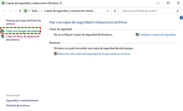Paso 2. En la siguiente pantalla, haga clic en la opción Crear una imagen del sistema.