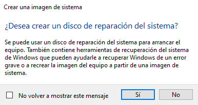 Una vez completado, generalmente se le pedirá que haga un disco de reparación del sistema. Se requiere un CD/DVD como dispositivo de almacenamiento.