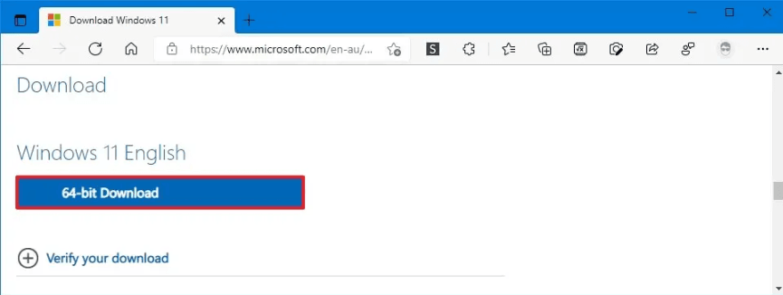 - Haz clic en 64 bits- Download para descargar el archivo ISO de Windows 11 22H2 de 64 bits en el sitio web de Microsoft, de acuerdo a la versión de tu computadora.