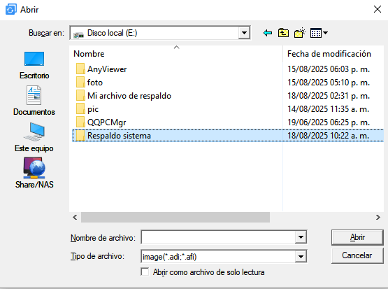◑Cree una imagen del sistema y guárdela en una ubicación a la que pueda acceder fácilmente el nuevo ordenador. Se recomienda guardar la imagen del sistema en un disco duro externo o en una ubicación de red.