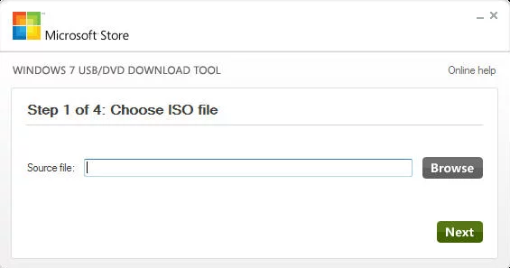 Paso 1. Conecte su pendrive y ejecute Windows 7/10/11 USB/DVD Download Tool, haga clic en el botón "Navegar" (Browse) para elegir su archivo de origen. Luego, haga clic en “Siguiente" ( Next) .
