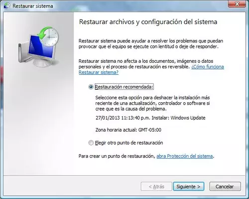 Paso 4. En esta ventana, debes asegurarte de que el punto de restauración del sistema recomendado funciona correctamente en ese momento. Si es así, haz clic en Siguiente. Si no es así, marca Elegir un punto de restauración diferente.