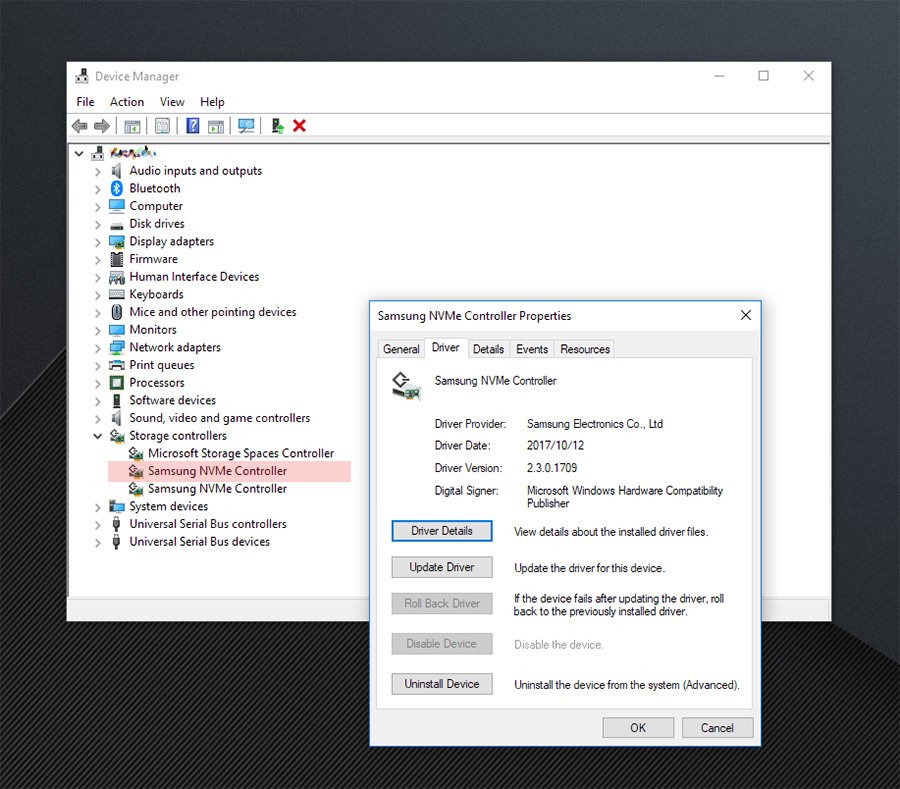 - Controlador NVMe para su SSD. Puede descargar de su proveedor.