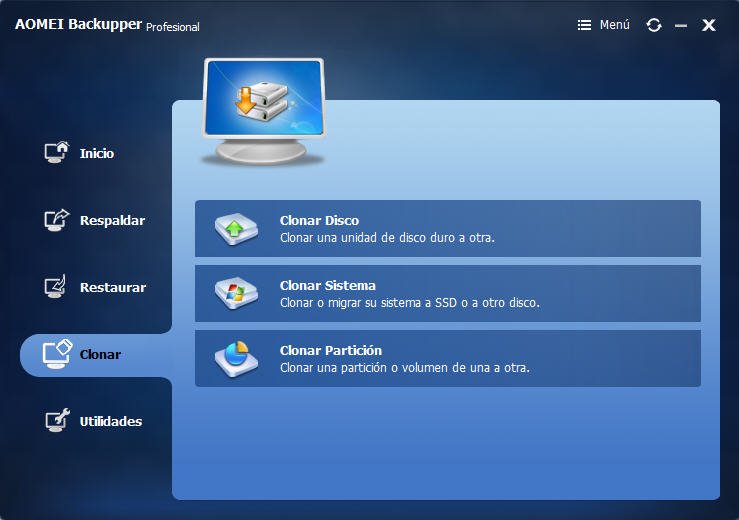 AOMEI Backupper Professional es un software profesional de clonación de discos, que integra "Clonar Sistema", "Clonar Disco" y "Clonar Partición" juntos. Los dos métodos de clonación anteriores son capaces de migrar el sistema operativo a SSD, y de cualquier manera, puede aumentar la velocidad de escritura y lectura de SSD. Entonces, ¿cuál deberías usar?