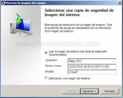 Paso 4. Marca Usar la imagen de sistema más reciente disponible (recomendado). Y luego haz clic en Siguiente para cumplir el proceso de restauración. Rearranca el sistema y encontrarás que has migrado el Windows 7 desde el HDD a SSD.