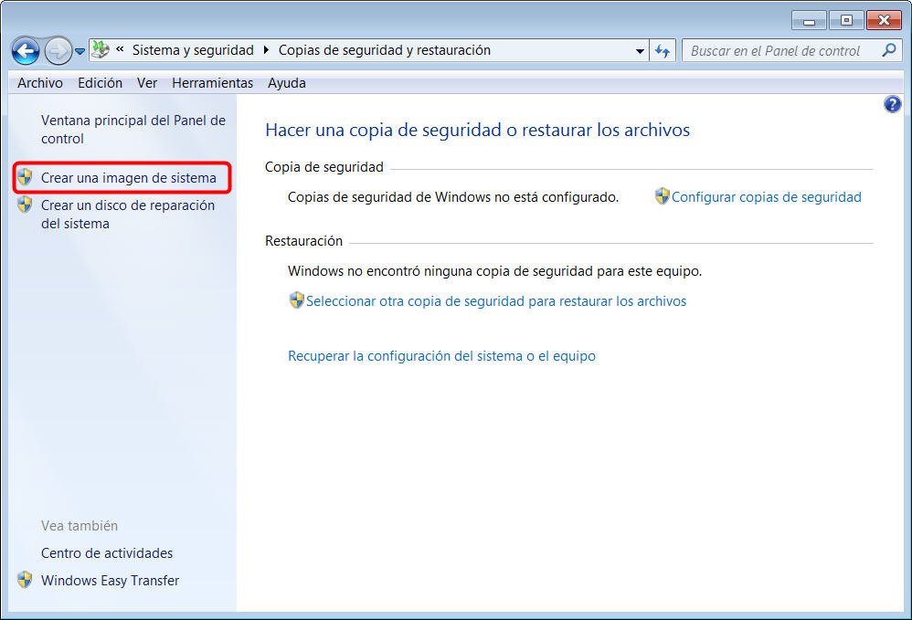 Método 2: Migrar SO a SSD en Windows 7 con Copia de Seguridad y Restauración
