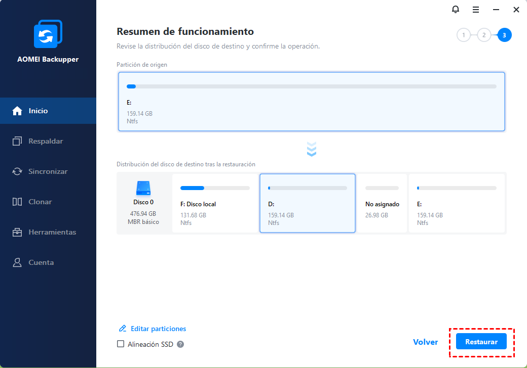 Restaurar Windows 7/10/11 con AOMEI Backupper.exe
