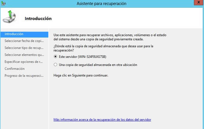 Paso 2. Seleccione Este servidor si ha almacenado la imagen de copia de seguridad en el disco conectado a este servidor. Si has almacenado la copia de seguridad en una unidad remota, es posible que tengas que indicar la ruta compartida.