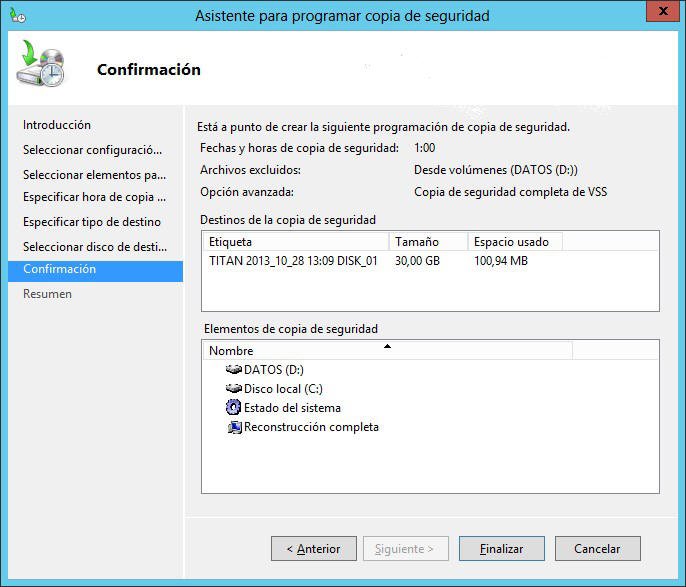 6. Confirme la operación y haga clic en Finalizar para iniciar el trabajo de copia de seguridad.