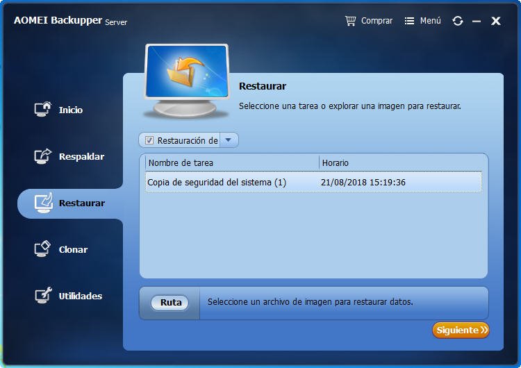 Paso 1. Descargue AOMEI Backupper Server, instálelo y ejecútelo. Luego, haga clic en Restaurar y Seleccionar Tarea para encontrar el archivo de imagen.
