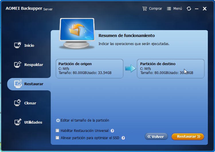 ★ Si va a restaurar en un ordenador con hardware diferente, se sugiere marcar "Restauración universal" para deshacerse de los problemas de controladores incompatibles y asegurarse de que puede arrancar con éxito desde el nuevo ordenador.
