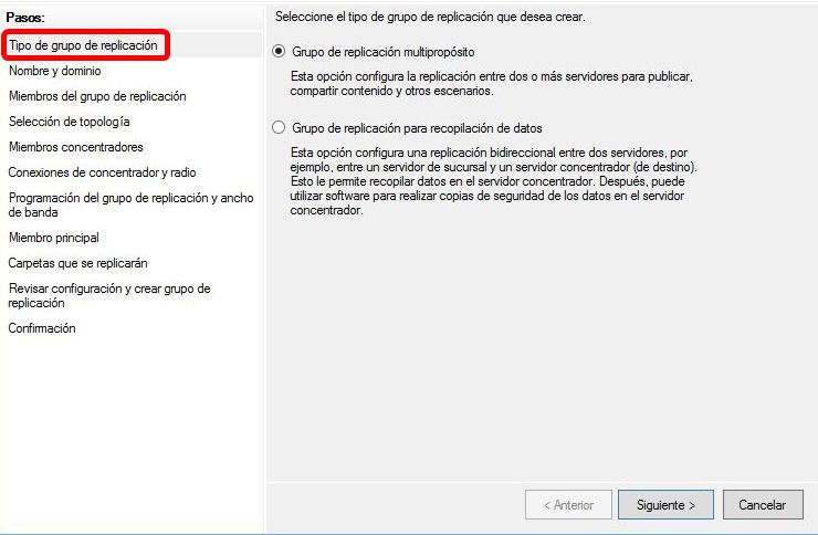 Paso 2. selecciona Tipo de grupo de replicación como lo siguiente.