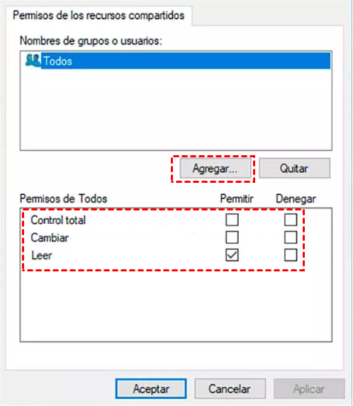 Haz clic en Añadir y busca los servidores en Active Directory, luego selecciona los servidores con los que quieres compartir archivos o carpetas y haz clic en Siguiente.