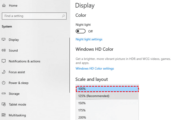 2. Expand the Displaydrop-down under Scale & Layout.Choose the recommended resolution.