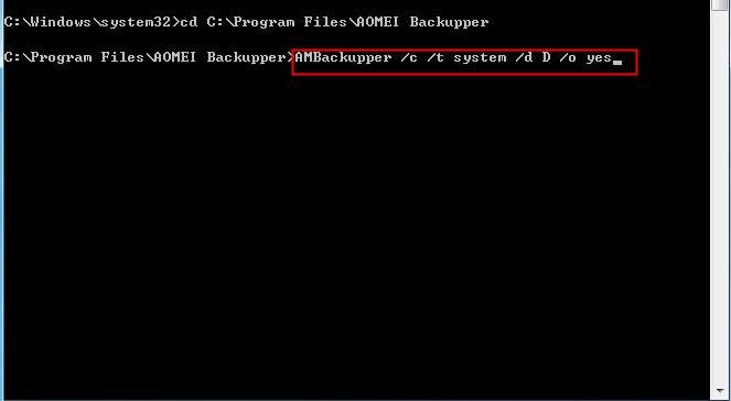 To get in AOMEI Backupper command line prompt, you need to type in the following command and press Enter:
