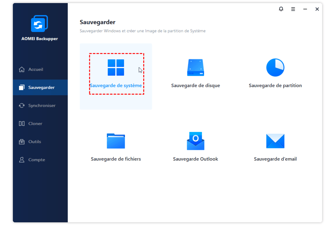 Ouvrez ce logiciel de sauvegarde PC. Cliquez sur « Sauvegarder » puis sur « Sauvegarde de Système ».