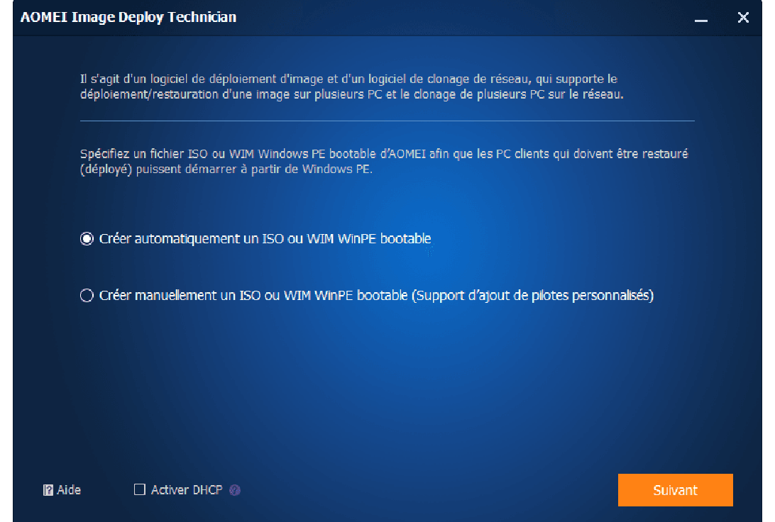 Cliquez sur « Outils » -> « AOMEI Image Deploy ». Ensuite, créez ou sélectionnez un fichier ISO.