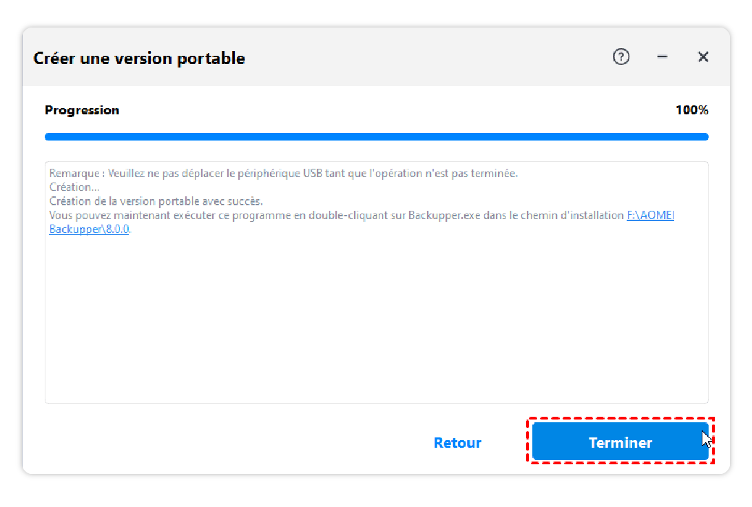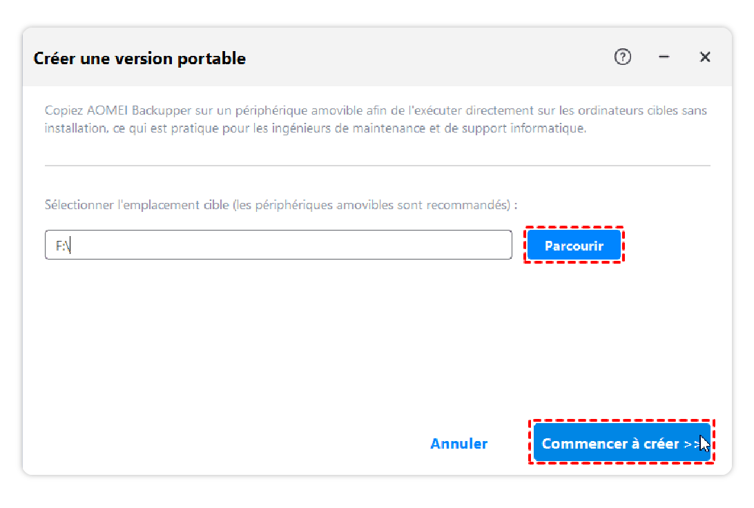Installer AOMEI Backupper sur un périphérique amovible afin de pouvoir l'exécuter directement sur les ordinateurs cibles sans l'installer.