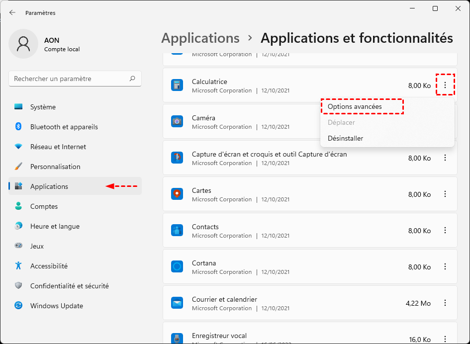 Étape 1. Accédez à Applications et fonctionnalités comme expliqué ci-dessus.