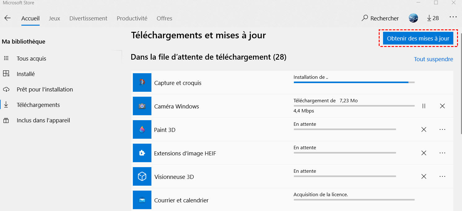 Étape 2. Cliquez sur le bouton Obtenir les mises à jour et trouvez l'application qui peut être mise à jour. Cliquez sur le bouton de mise à jour et attendez que la mise à jour soit terminée.