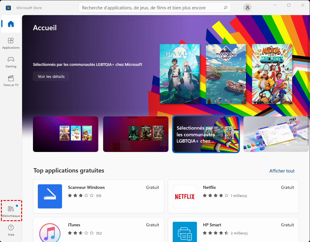 Étape 1. Ouvrez la fenêtre Microsoft Store de la même manière et cliquez sur le bouton Bibliothèque dans le coin inférieur gauche.