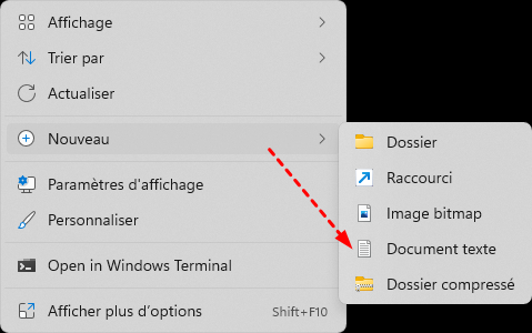 Étape 1. Cliquez avec le bouton droit sur la zone vide du bureau, sélectionnez Nouveau dans le menu développé, puis sélectionnez Document texte.