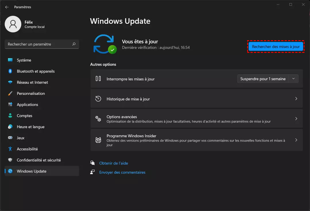 Windows 11 a eu plusieurs mises à jour depuis sa sortie. Le fait que votre Windows 11 n’est pas la dernière version sortie peut engendrer le problème d’impossibilité d’exécuter une application sur votre appareil. Pour cette raison, vous devez mettre à jour votre version de Windows 11, et Microsoft recommande également aux utilisateurs de Windows 11 d'installer la dernière mise à jour KB5006746 à partir du 21 octobre 2021.