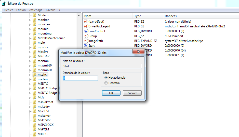 Avant de changer la carte mère ou le processeur dans Windows 8/10 ou Server 2012, vous devez modifier la clé msahci dans le registre, car elle a été remplacée par StorAHCI dans ces systèmes.