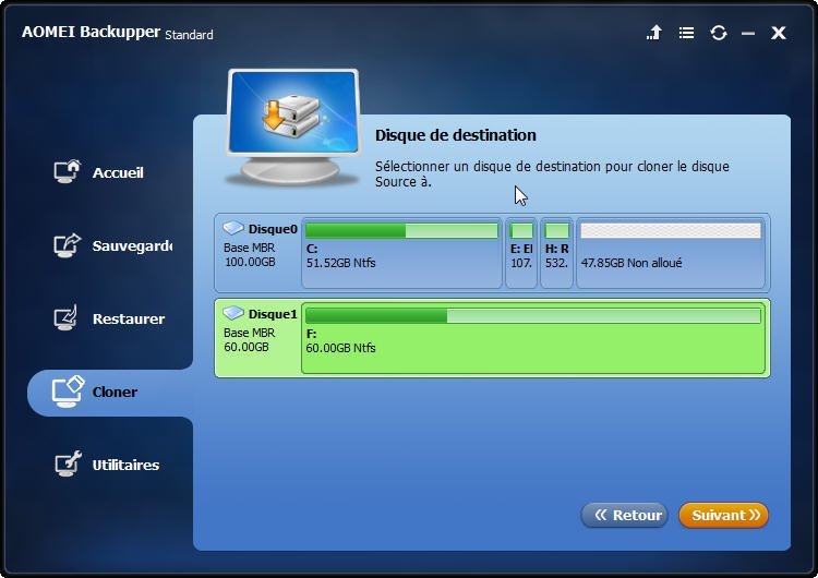 - Cloner secteur par secteur est une option facultative pour copier tous les secteurs du disque sur le disque de destination, la taille du disque de destination doit être égale ou supérieure à disque source.