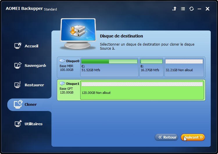 De cette façon, vous pouvez non seulement cloner un disque dur sur un SSD externe, mais également cloner un disque dur externe sur un disque interne avec succès.